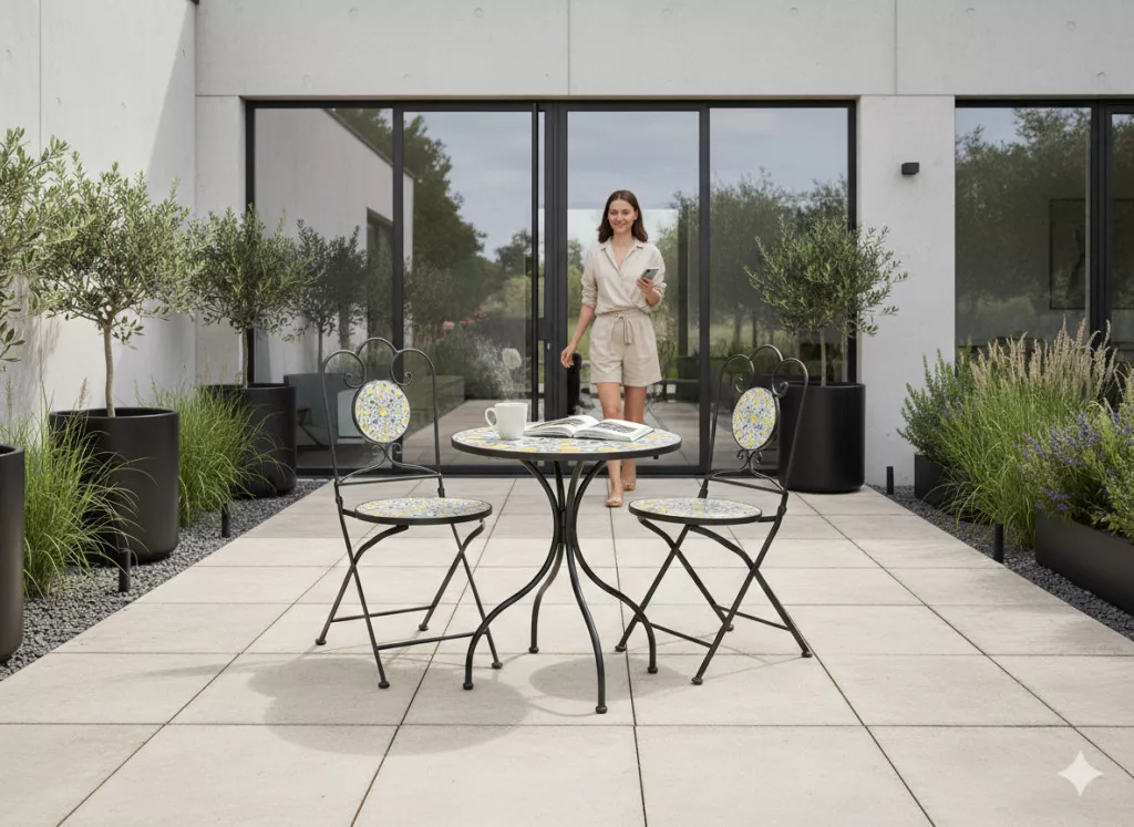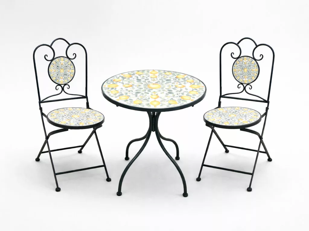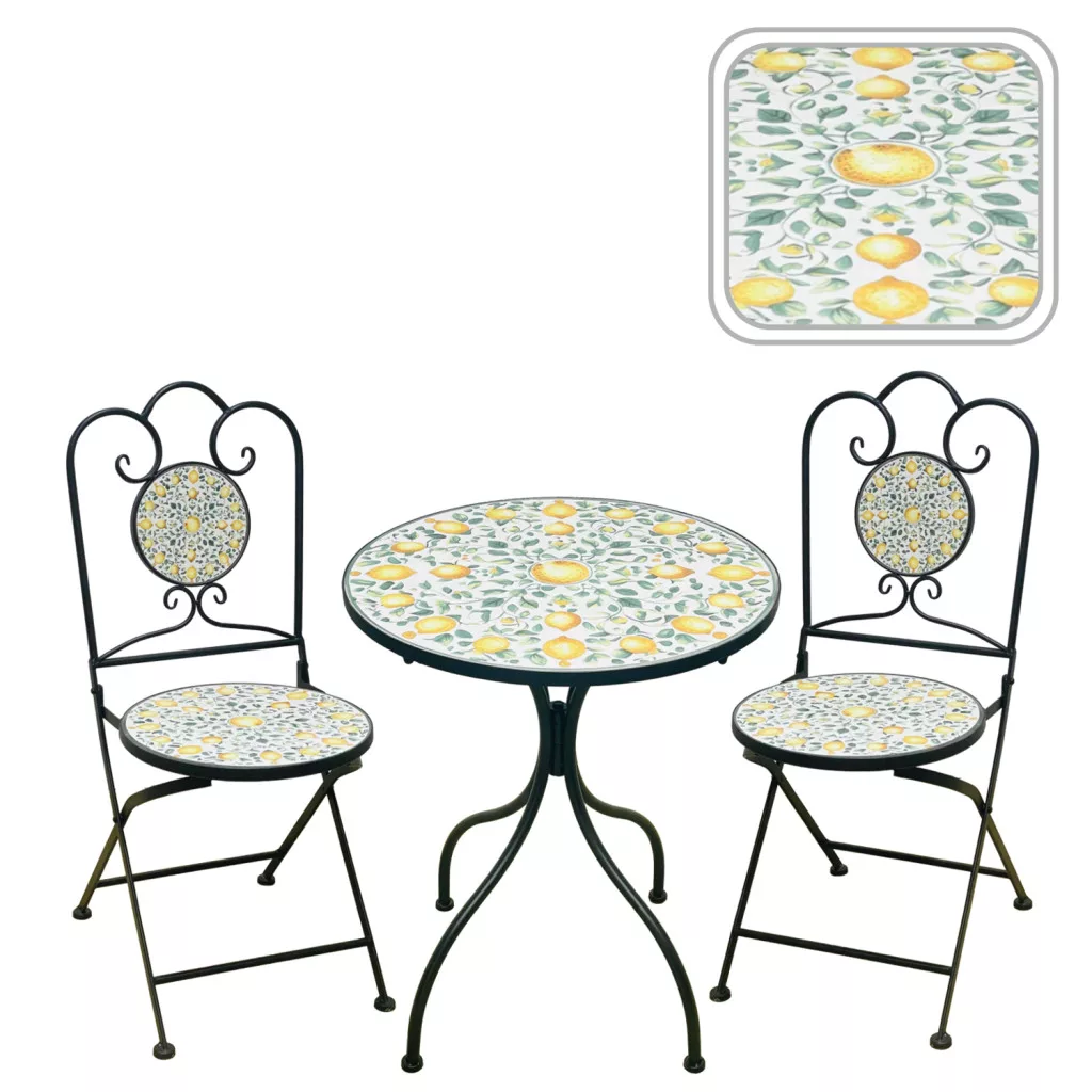 Fém Kerti Bútorkészlet Mozaik „LEMONIA" Asztal + 2 Szék